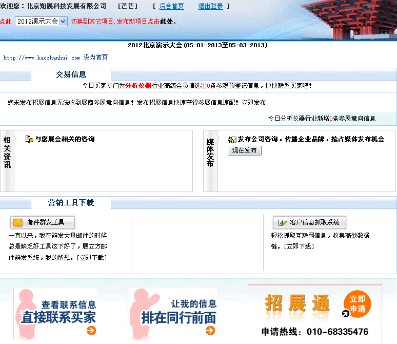 2.對我們的會員,可以定期登錄查看在行業(yè)、專題下面表明要參觀、參展的人的信息,并和他們保持聯(lián)系