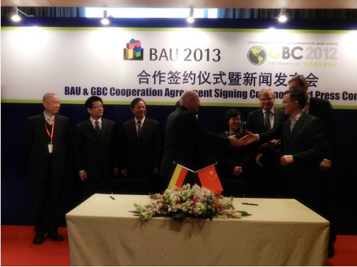 2012年3月26日,VNU亞洲展覽集團-上海萬耀企龍展覽有限公司與德國慕尼黑展覽集團MMG全資子公司慕尼黑展覽(上海)有限公司在證大喜馬拉雅中心正式簽訂合作協議。自2012年起,慕尼黑展覽公司將全面助力中國可持續(xù)建筑大會綠色建筑展覽會(Green Building China-GBC)。德國慕尼黑展覽公司主辦的BAU是全球最重要的國際建筑和建設行業(yè)展覽會。2011年剛結束的活動吸引了超過2,000家企業(yè)參與,展示一流的建筑產品與服務,吸引近240,000專業(yè)觀眾參觀。