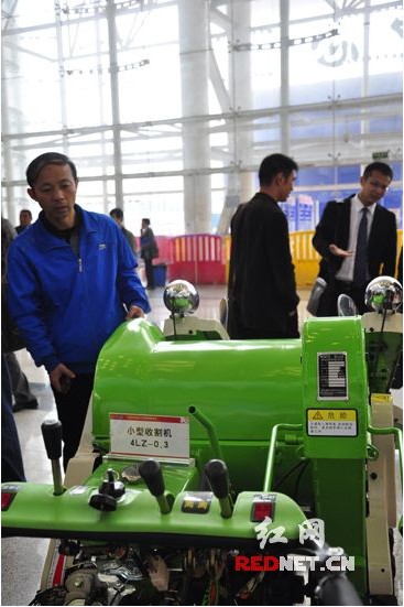 2012全國(guó)農(nóng)業(yè)機(jī)械展覽會(huì)在湖南國(guó)際會(huì)展中心舉行,一臺(tái)號(hào)稱全球最小最輕的收割機(jī)吸引了參觀者的目光。