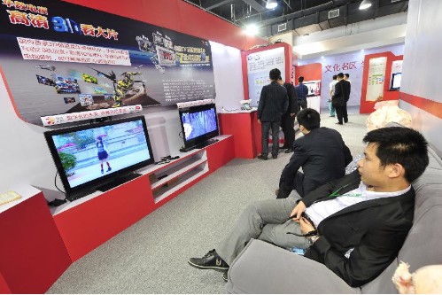 4月19日,參觀者在第六屆中國杭州電子信息博覽會上對比3D高清電視節(jié)目與普通電視節(jié)目的視覺效果。當(dāng)日,為期4天的第六屆中國杭州電子信息博覽會暨第六屆杭州國際社會公共安全產(chǎn)業(yè)博覽會在杭州和平國際會展中心開幕。本屆杭州電博會以“智慧、融合、創(chuàng)新”為主題,共設(shè)展位近千個,展覽面積達(dá)2萬平方米,結(jié)合杭州和臺灣電子信息產(chǎn)業(yè)的優(yōu)勢,重點(diǎn)展出智慧城市、云計(jì)算、物聯(lián)網(wǎng)、信息安全、移動商務(wù)、移動教育、數(shù)字家庭等方面的最新技術(shù)和產(chǎn)品。