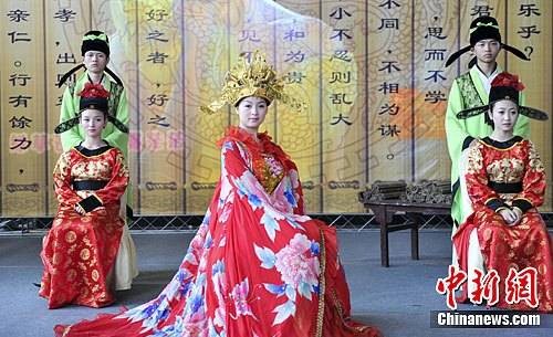 4月24日,古裝美女在中國(guó)(濟(jì)南)國(guó)際演出交易會(huì)暨演藝裝備場(chǎng)所設(shè)施展覽會(huì)上向觀眾推介演藝項(xiàng)目。當(dāng)日開(kāi)幕的該展會(huì)有200多家國(guó)內(nèi)知名演出公司、演藝裝備場(chǎng)所設(shè)施企業(yè)向參觀者推介演藝項(xiàng)目、展示演出設(shè)施設(shè)備。(來(lái)源:中新網(wǎng))