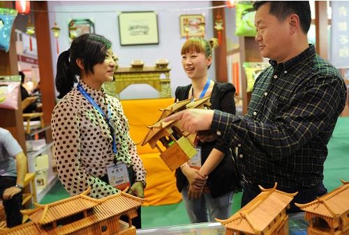5月2日,客商在義烏文博會上采購傳統(tǒng)工藝品。當日,展期4天的第七屆中國義烏文化產(chǎn)品交易博覽會落下帷幕,實現(xiàn)展覽成交額45.17億元,同比增長11.2%,其中,外貿(mào)成交額27.55億元,同比增長10.69%。作為國內(nèi)最重要的文化產(chǎn)業(yè)交易博覽會之一,此次義烏文博會共設國際標準展位3485個,展覽面積6.8萬平方米,共有來自117個國家和地區(qū)的9.2萬余名境內(nèi)外采購商參會。(來源:新華社)