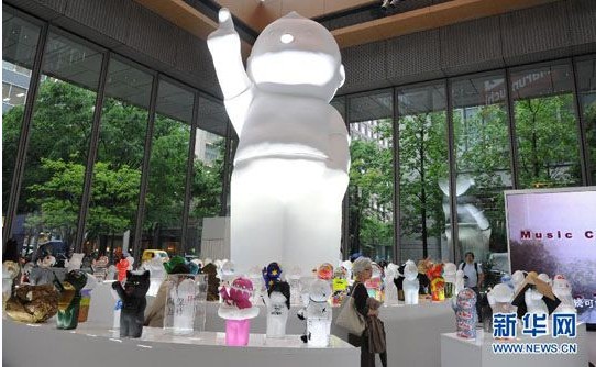 5月15日,日本東京,觀眾觀看香港、日本創(chuàng)意家以“天天向上”為主題的創(chuàng)意雕塑作品。當(dāng)天,為慶祝中國(guó)香港特別行政區(qū)成立15周年,由香港特別行政區(qū)東京經(jīng)濟(jì)貿(mào)易代表部主辦的“天天向上”創(chuàng)意雕塑展在東京舉行。展覽以香港藝術(shù)家榮念曾創(chuàng)作的5米高“天天向上”創(chuàng)意毛坯雕塑為主題,并展示了來(lái)自中國(guó)香港和日本的藝術(shù)家在毛坯雕塑上繪制的不同表情和服飾的130件作品。(來(lái)源:新華網(wǎng))