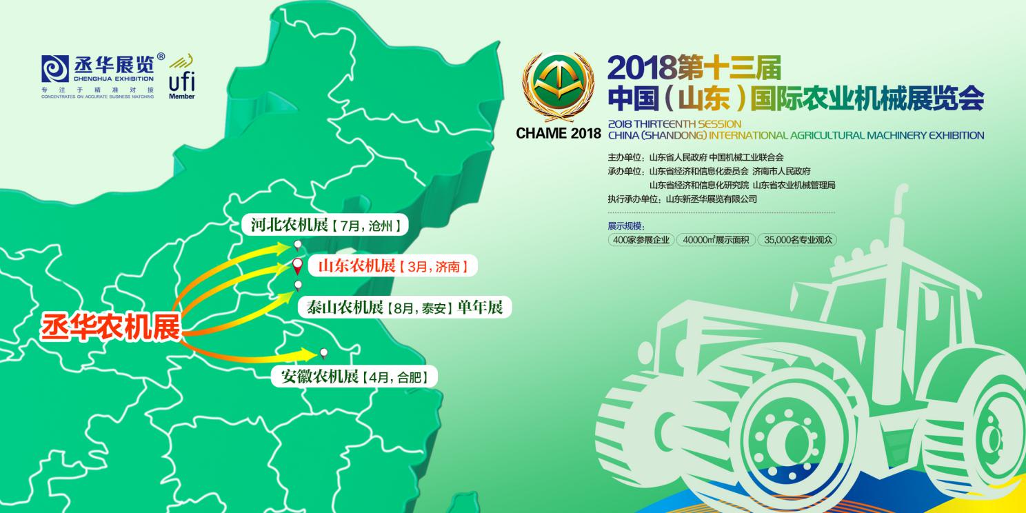 為進一步提高山東提高農(nóng)業(yè)技術裝備和信息化水平,2018年3月6—8日,由山東省人民政府、中國機械工業(yè)聯(lián)合會共同主辦,山東省經(jīng)濟和信息化委員會、山東省經(jīng)濟和信息化研究院、山東省農(nóng)業(yè)機械管理局聯(lián)合承辦,山東新丞華展覽有限公司執(zhí)行承辦的“2018第十三屆中國(山東)國際農(nóng)業(yè)機械展覽會(簡稱:農(nóng)機展)”將在濟南國際會展中心隆重舉辦。