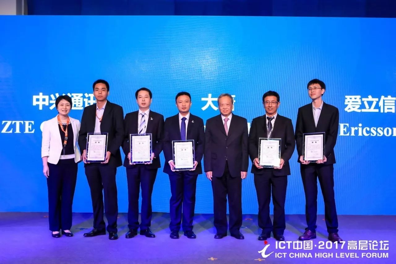 (圖為2017年通過5G第二階段測試企業(yè)在PT展現(xiàn)場領(lǐng)取證書)