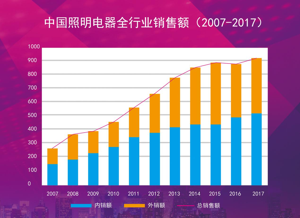 近年來,我國(guó)照明行業(yè)的發(fā)展堪稱神速。以去年為例,2017年我國(guó)照明電器行業(yè)整體銷售額約為5800億人民幣,比2016年的5600億人民幣增長(zhǎng)約3.6%。外銷也從2016年的388億增長(zhǎng)至412億美元。