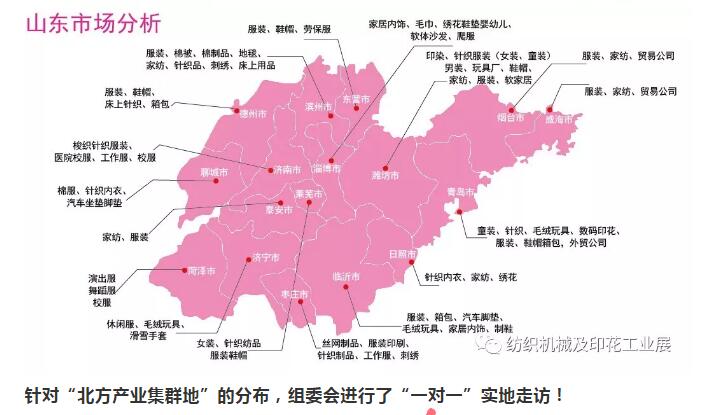 青島印花展是“中國北方唯一的紡織品印花工業(yè)展”。涉及的產(chǎn)業(yè)有印花印染廠、服裝廠、面料生產(chǎn)企業(yè)、泳裝、戶外用品、毛絨玩具、家紡、地毯、毛巾用戶及非紡織用戶等等。根據(jù)市場需求,組委會也進行了跑市場計劃,實地邀約!