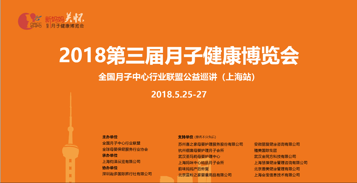 2018第三屆月子健康博覽會全國月子中心行業(yè)聯(lián)盟公益巡講(上海站)于5月25-27日在上海光大會展中心圓滿舉行