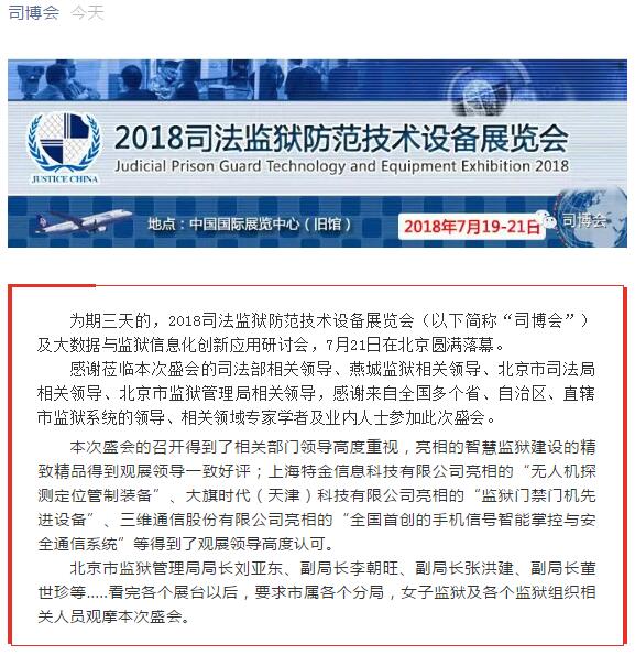 - 2018司法監(jiān)獄防范技術(shù)設(shè)備展覽會圓滿落幕