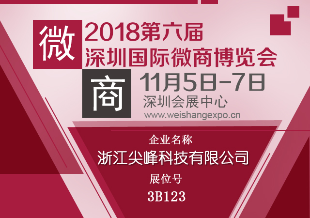 導(dǎo)讀:第六屆深圳國(guó)際微商博覽會(huì)將于2018年11月5-7日在深圳會(huì)展中心盛大開(kāi)幕!浙江尖峰健康科技有限公司(JFHEALTH) 將攜旗下舒尼維等產(chǎn)品于3B123展位展出!