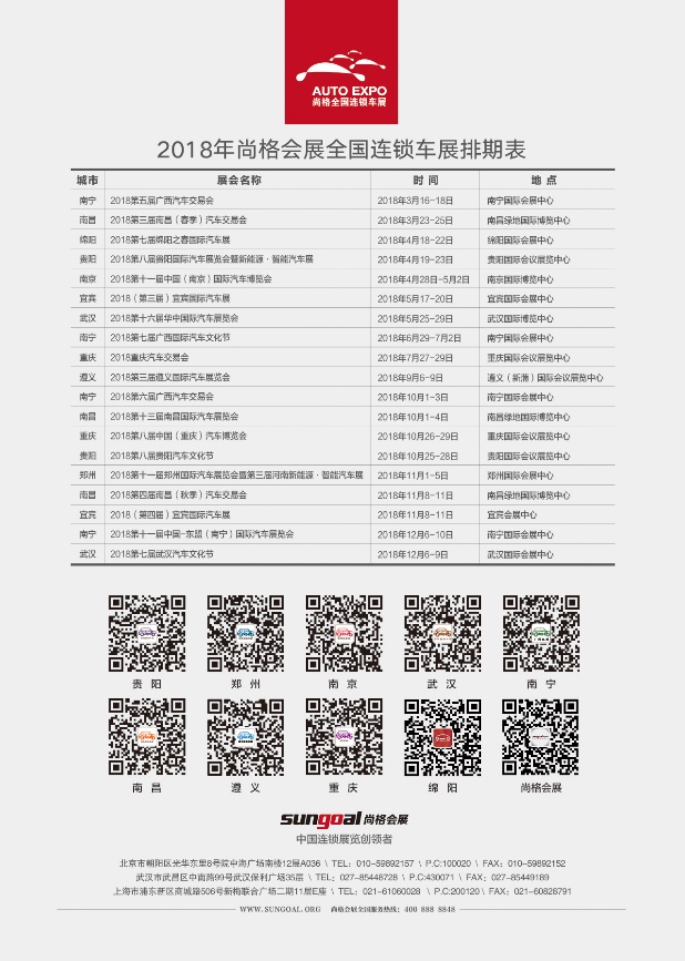 尚格會展,勵精圖治23年,在武漢、南京、南昌、鄭州、貴陽、遵義、綿陽、宜賓、重慶、南寧等十余城市,每年舉辦20余場車展,年組展面積超100萬平方米,尚格以“夸父逐日”的精神持續(xù)探索著行業(yè)。近年來車市緩增,會展業(yè)同質化嚴重,在此巨大的商戰(zhàn)變革中,尚格逆勢突圍、撥亂反正,穩(wěn)坐中國二三線城市車展的龍頭交椅。限量免費搶票瘋狂進行中,點我點我。