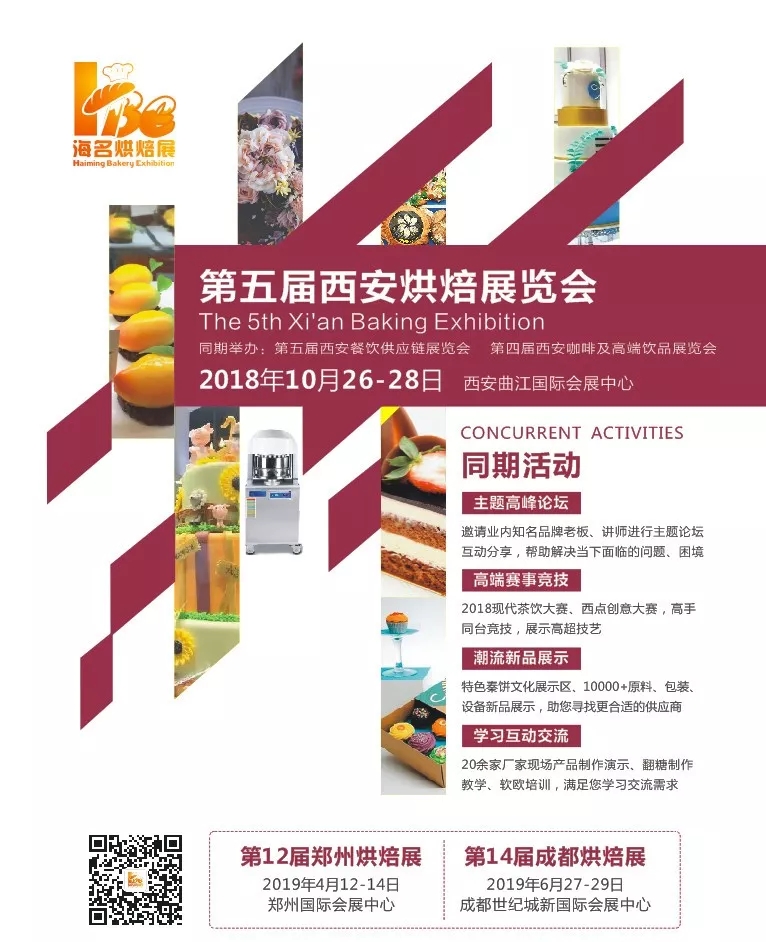 通過西安周邊地市的走訪,小編對陜西的烘焙市場有了更深入的了解,對接下來的招觀方向也更清晰了,為了這些烘焙餅店的期望和參展商的參展效果,接下來我們將繼續(xù)上路,拜訪陜西、山西、甘肅、寧夏等西北地區(qū)各地市的餅店、蛋糕店、咖啡、飲品、經銷商等專業(yè)買家。此次西安烘焙展不僅讓觀眾看到最新的烘焙產品、同期還將舉行多場論壇、比賽、產品制作等,匯聚行業(yè)人士同臺競技;同時滿足采購需求,也更能讓廠商通過展會了解前沿一線的西北烘焙市場和發(fā)展走向。我們秉承著讓客戶做生意更便捷,讓渠道和終端采購更省時,讓廣大消費群體食用更放心的信念!歡迎行業(yè)人士2018年10月26-28日相聚西安曲江國際會展中心參觀第五屆西安烘焙展。