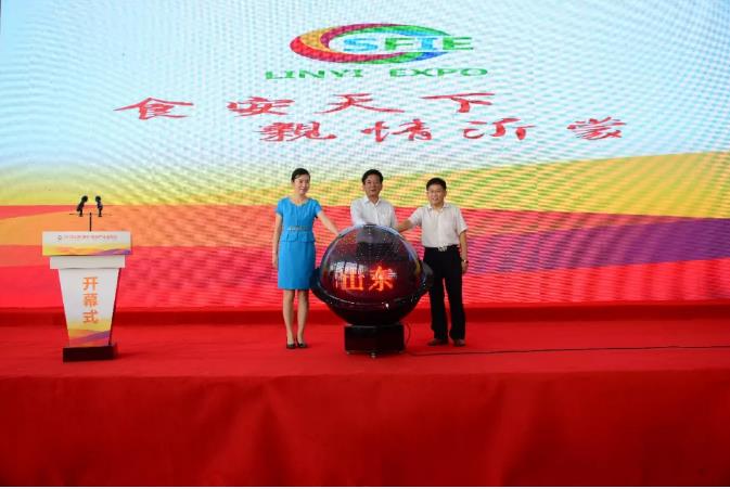 山東省商務(wù)廳副廳長(zhǎng) 王洪平先生、山東省農(nóng)業(yè)廳二級(jí)巡視員 姜衛(wèi)良先生、臨沂市委副書(shū)記張宏偉女士共同點(diǎn)亮啟動(dòng)球。