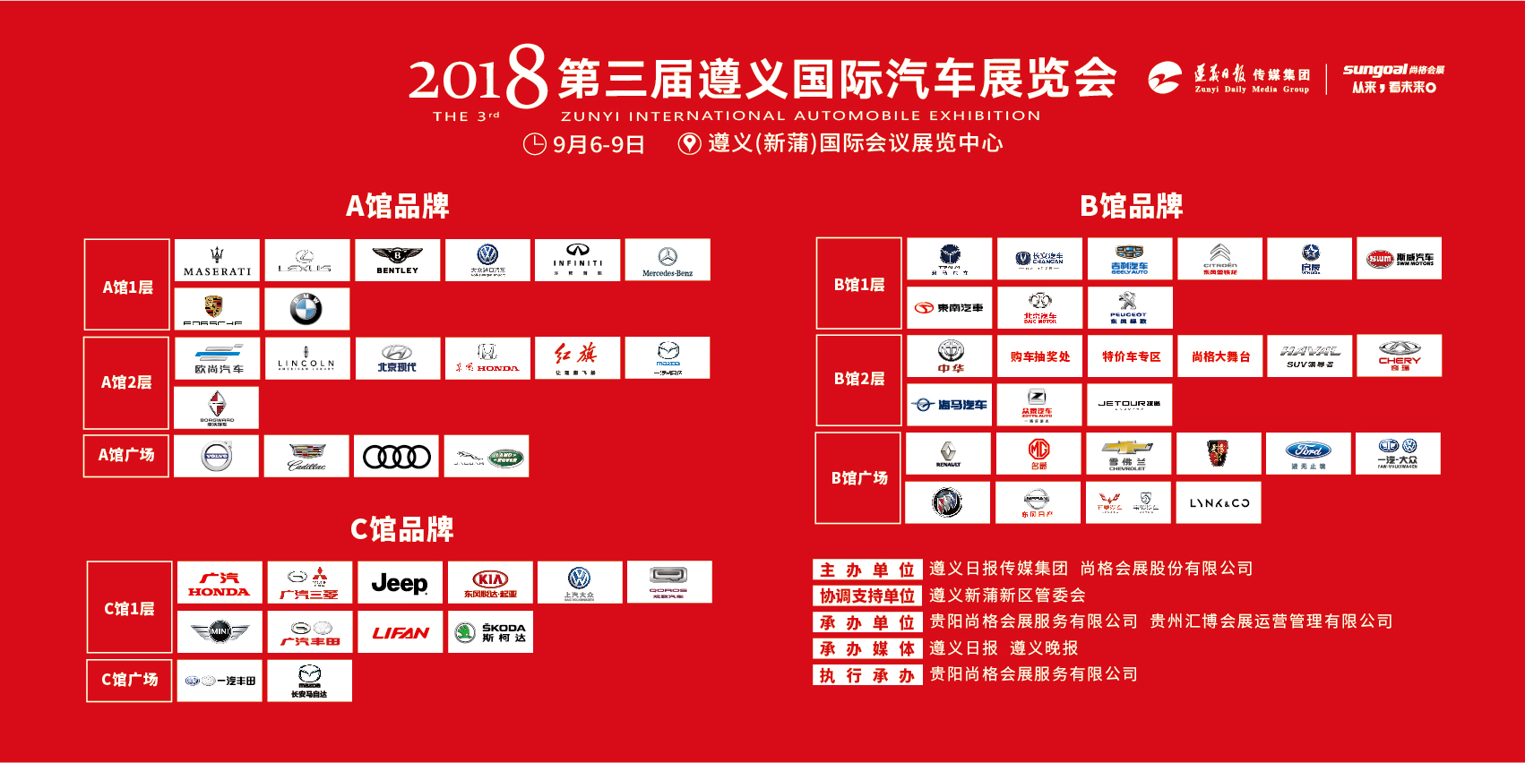 2018年9月6-9日,第三屆遵義國際汽車展覽會(以下簡稱“遵義國際車展”),在遵義(新蒲)國際會議展覽中心盛大舉行。本屆車展由遵義日報傳媒集團(tuán)、尚格會展股份有限公司主辦,新蒲新區(qū)管委會協(xié)調(diào)支持,貴陽尚格會展服務(wù)有限公司、貴州匯博會展運(yùn)營管理有限公司共同承辦,遵義日報、遵義晚報作為承辦媒體,貴陽尚格會展服務(wù)有限公司執(zhí)行承辦。新一屆的遵義國際車展為廣大市民帶來更多時尚、創(chuàng)新的汽車消費(fèi)體驗(yàn)。