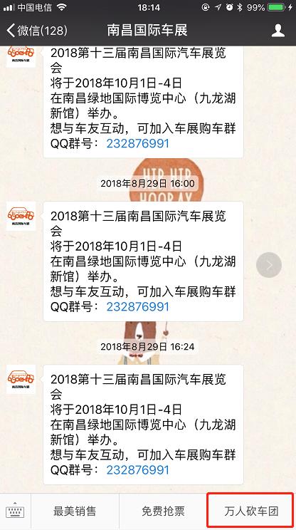 2、報(bào)名成功后7日內(nèi)將有專業(yè)客服人員聯(lián)系,獲得車展門票,并加入汽車品牌微信群組成“砍車團(tuán)”,成功加群即表示您參與成功了;
