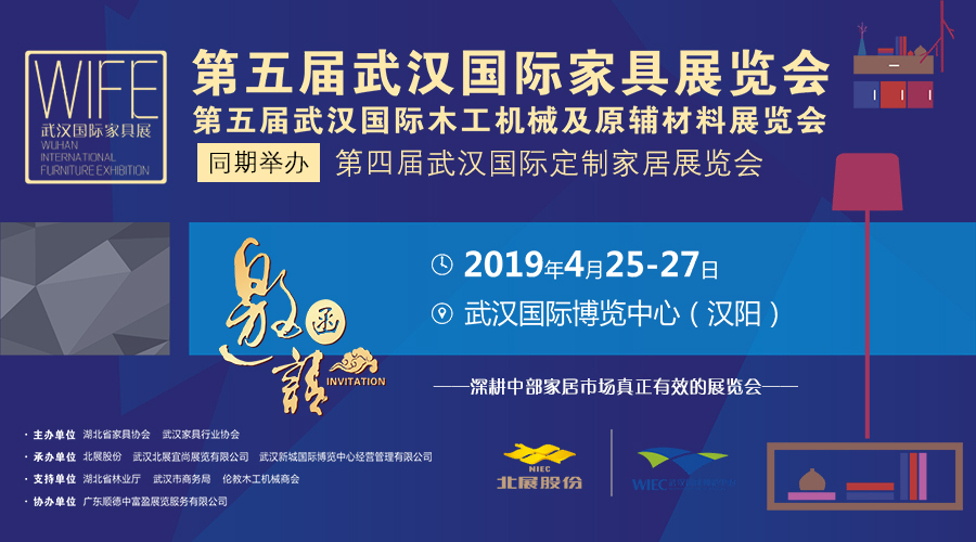 第五屆武漢國際家具\木工機(jī)械及原輔材料展覽會將于2019年4月25日-27日在武漢國際博覽中心召開。參展企業(yè)及產(chǎn)品涵蓋了整個家具行業(yè)的各個方面,展會期間,將同期舉辦第四屆武漢國際定制家居展覽會,為參展企業(yè)深耕中部家居市場提供高效的交流合作平臺。