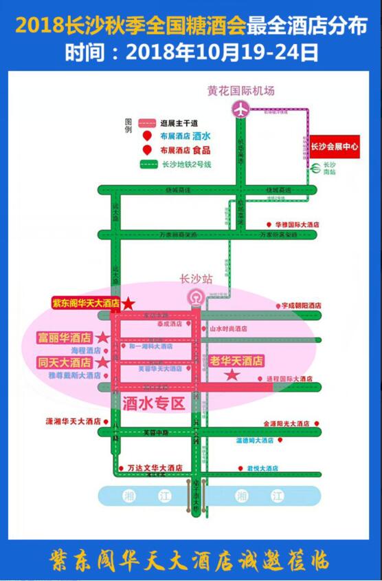 【紫東閣華天大酒店·酒水布展專區(qū)】2018長沙秋糖布展點集中,自成一體,布展中心區(qū)主要為長沙市火車站、五一路、萬家麗路三大區(qū)域。特別是酒類展區(qū),沿襲了糖酒會歷來以“火車站+市中心”的傳統(tǒng)布展模式,在長沙市區(qū)主干線火車站上形成了以紫東閣華天大酒店為中心的精品酒水展覽專區(qū)。身處德天都厚地理位置的紫東閣華天大酒店,不僅在秋糖酒店展區(qū)集中圈,更是五一路起點長沙火車站出站第①座酒水布展酒店,毗鄰萬家麗。黃金地段、絕佳展示空間、物超所值的性價比、搶到的都是商機(jī)!