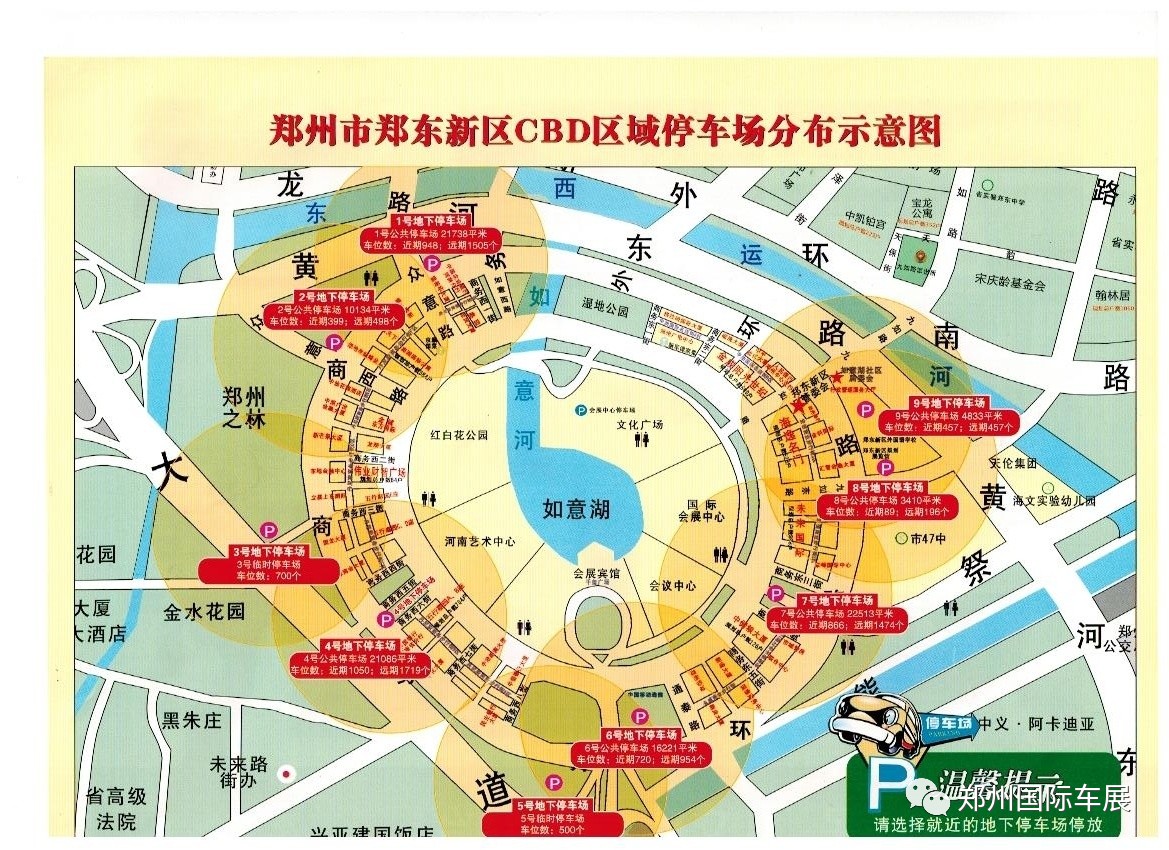 鄭州國(guó)際車展期間,建議大家綠色出行。管制期間,僅以下停車場(chǎng)可停車