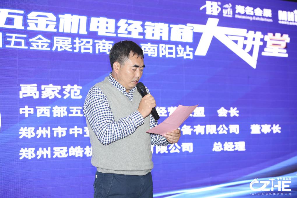 中西部五金機(jī)電創(chuàng)新經(jīng)營(yíng)聯(lián)盟常務(wù)副會(huì)長(zhǎng)、南陽(yáng)鑫盛機(jī)電柴向陽(yáng)柴總作為南陽(yáng)地區(qū)優(yōu)秀經(jīng)銷商代表上臺(tái)致辭歡迎。柴總首先代表南陽(yáng)地區(qū)五金機(jī)電經(jīng)銷/批發(fā)商對(duì)于本次經(jīng)銷商大講堂選址南陽(yáng)表示歡迎,柴總講到南陽(yáng)作為豫鄂陜交界地區(qū)區(qū)域性中心城市、國(guó)家區(qū)域中心城市、中國(guó)首批新能源示范城市、高新技術(shù)產(chǎn)業(yè)開發(fā)城市,海名會(huì)展·鄭州五金展,一個(gè)擁有優(yōu)秀的產(chǎn)業(yè)鏈資源,匯聚行業(yè)前沿觀點(diǎn)、趨勢(shì)的中西部地區(qū)五金機(jī)電行業(yè)最具價(jià)值的綜合服務(wù)平臺(tái)。