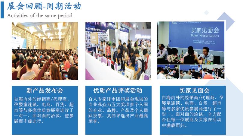 為提升企業(yè)的品牌知名度和美譽度,彰顯卓越的產(chǎn)品品質(zhì)和服務(wù),展會開展期間將舉行產(chǎn)品評獎活動,大會獎項設(shè)置“金獎”;“推薦新產(chǎn)品”獎;“優(yōu)質(zhì)產(chǎn)品、最佳產(chǎn)品”獎;(相關(guān)參評條件請向組委會索取)。展會期間將邀政府機構(gòu)、國家級媒體及行業(yè)媒體、業(yè)內(nèi)專家、舉辦千人大會及多場專題論壇,會議與展會相互輝映,品牌企業(yè)的必選!母嬰連鎖與電商智變專題論壇,母嬰零售門店升級發(fā)展新途徑母嬰服務(wù)品牌升級發(fā)展論壇,月子會所與產(chǎn)后修復(fù)發(fā)展論壇,嬰兒游泳與親子攝影論壇、資助貧困兒童大型義賣公益活動、公益大講堂等等。使眾多參會人員在參觀展會的同時,享受學(xué)習(xí)、交流的饕餮盛宴,得到了參展企業(yè)的一致好評。