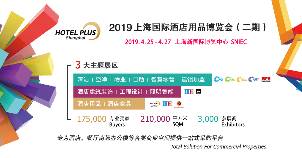 2019新國際博覽中心再度全館齊放,打通行業(yè)壁壘,共享210,000平方米展出面積,175,000觀眾資源,近3,000優(yōu)質(zhì)海內(nèi)外廠商。同期展會貫穿酒店工程、清潔產(chǎn)品、物業(yè)保潔、建筑裝飾、商業(yè)智能化設(shè)備等行業(yè),定位于中高端產(chǎn)品,為全球買家提供全系列解決方案和信息交流與分享的機會,為酒店、餐廳、商場辦公樓等各類商業(yè)空間提供服務(wù)及整體解決方案的一站式采購平臺。