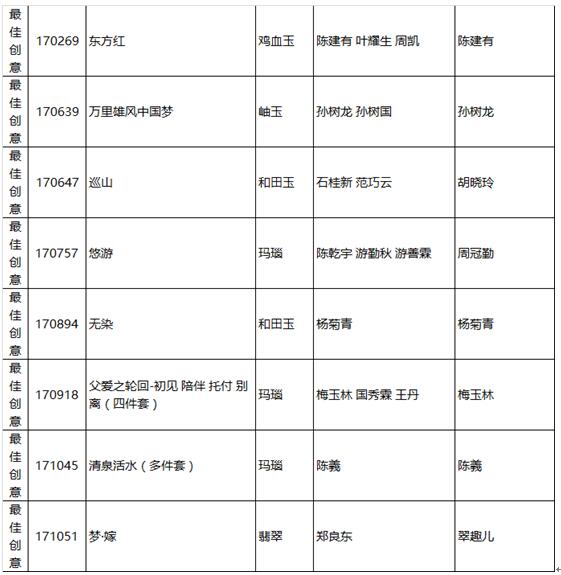 今年的“天工獎”作品征集充分考慮市場現(xiàn)狀、擴(kuò)大范圍:來源地區(qū)更加廣泛,覆蓋全國所有玉雕產(chǎn)業(yè)區(qū);作品材質(zhì)更加豐富,多達(dá)二十余種。但“廣撒網(wǎng)”不是目的,“天工獎”真正要做的是大浪淘沙、去偽存真,需要更高標(biāo)準(zhǔn)的品質(zhì)把關(guān)!此次入圍作品僅343件,是歷年評選標(biāo)準(zhǔn)最嚴(yán)、入圍最少的一次。