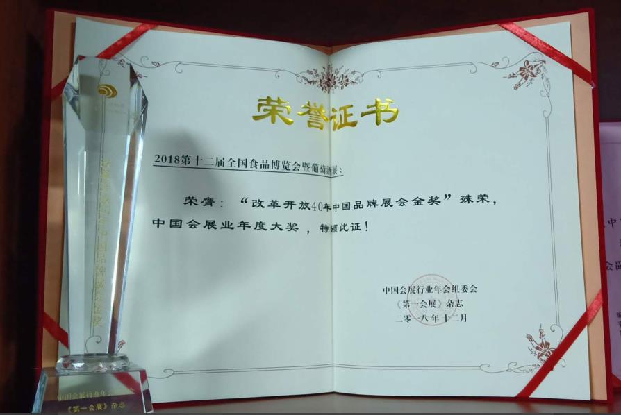 全國(guó)食品博覽會(huì)已經(jīng)成功舉辦了12屆,其專業(yè)化、市場(chǎng)化、國(guó)際化、綜合化不斷提升,是中國(guó)食品領(lǐng)域最具知名度和權(quán)威性的展覽會(huì)之一。在2018年度中國(guó)會(huì)展產(chǎn)業(yè)頒獎(jiǎng)盛典上,由中貿(mào)集團(tuán)主辦的“全國(guó)食品博覽會(huì)”榮膺“改革開(kāi)放40年中國(guó)品牌展會(huì)金獎(jiǎng)”殊榮。在山東省商務(wù)廳組織開(kāi)展的第二批山東省品牌展會(huì)評(píng)選中,全國(guó)食品博覽會(huì)獲得“山東省品牌展會(huì)”稱號(hào)。這榮譽(yù)不僅是對(duì)展會(huì)走向品牌化的權(quán)威肯定,亦是對(duì)近年來(lái)全國(guó)食品博覽會(huì)在會(huì)展產(chǎn)業(yè)發(fā)展道路中所做出的突出貢獻(xiàn)和成績(jī)的肯定。