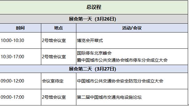 博覽會(huì)同期舉辦將“國(guó)際停車北京峰會(huì)暨中國(guó)城市公共交通協(xié)會(huì)城市停車分會(huì)成立大會(huì)”、“中國(guó)城市公共交通協(xié)會(huì)安全防范分會(huì)成立大會(huì)”、“第二屆中國(guó)城市交通充電設(shè)施論壇”。