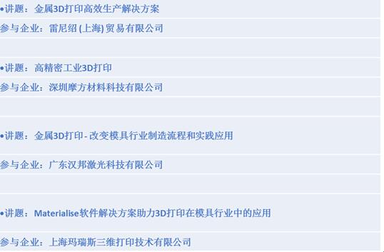 廣州國際模具展覽會(huì)研討會(huì)及中國3D產(chǎn)業(yè)技術(shù)應(yīng)用峰會(huì)將于今屆展會(huì)再度回歸。前者將深入剖析最創(chuàng)新的技術(shù)應(yīng)用及當(dāng)前的發(fā)展;后者則將由業(yè)內(nèi)領(lǐng)先公司的關(guān)鍵人物主持,分享他們就3D打印對制造業(yè)未來影響的看法。兩者合共舉辦近20場高端演講,為業(yè)界人士分析模具和3D打印技術(shù)方面的市場前景、介紹行業(yè)最新技術(shù)突破、解構(gòu)行業(yè)趨勢及機(jī)遇。部份已確認(rèn)的講題包括:
