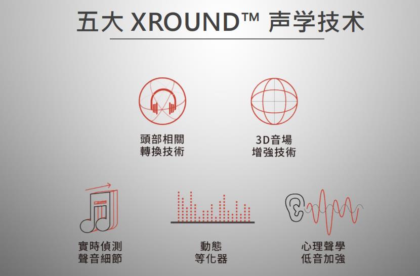過往的家庭劇院往往需要龐大的空間和不斐的預(yù)算才能夠裝設(shè),同時無法隨身連接手機帶著走,隨時隨地體驗聲音帶來的深層感動。XROUND 演算法突破時間與空間種種限制,透過獨家音訊演算技術(shù)使普通雙聲道喇叭或耳機能夠擁有 360 度的環(huán)繞音效體驗感,并同時運用智慧演算功能以十萬分之秒的速度高速更新運算,搭配心理聲學(xué)低頻加強與智慧動態(tài)等化器的技術(shù),表達聲音更多的細(xì)節(jié),在電影和游戲中,提供使用者更豐富的臨場體驗感;不論在地鐵,公交,公寓,宿舍或是騎著單車,都能無縫接軌專屬的體驗。