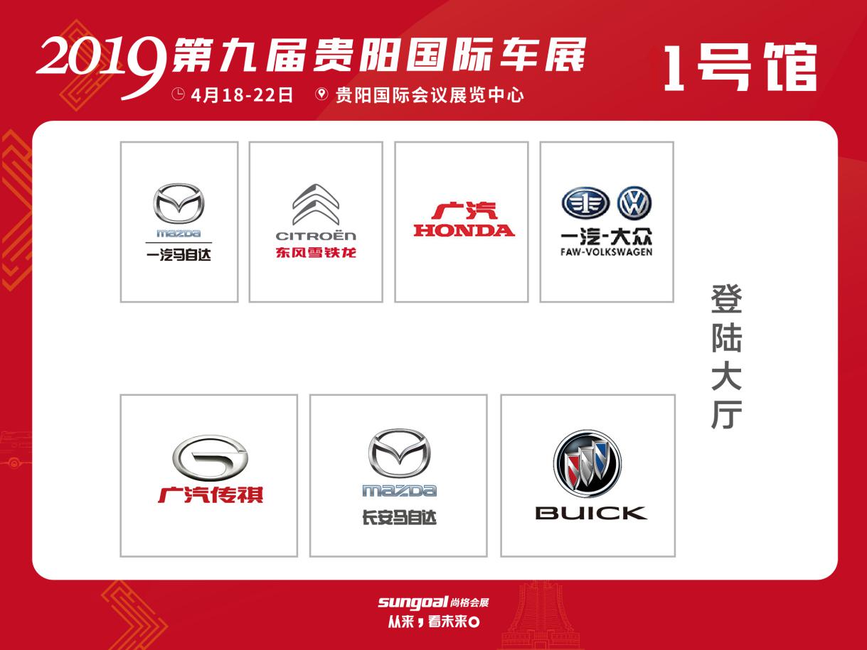 1號(hào)館(按順時(shí)針方向):一汽馬自達(dá)、東風(fēng)雪鐵龍、廣汽本田、一汽大眾、別克、長(zhǎng)安馬自達(dá)廣汽傳祺