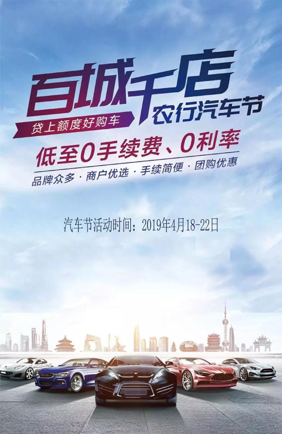 農業(yè)銀行:百城千店農行購車節(jié),低至0手續(xù)費、0利率