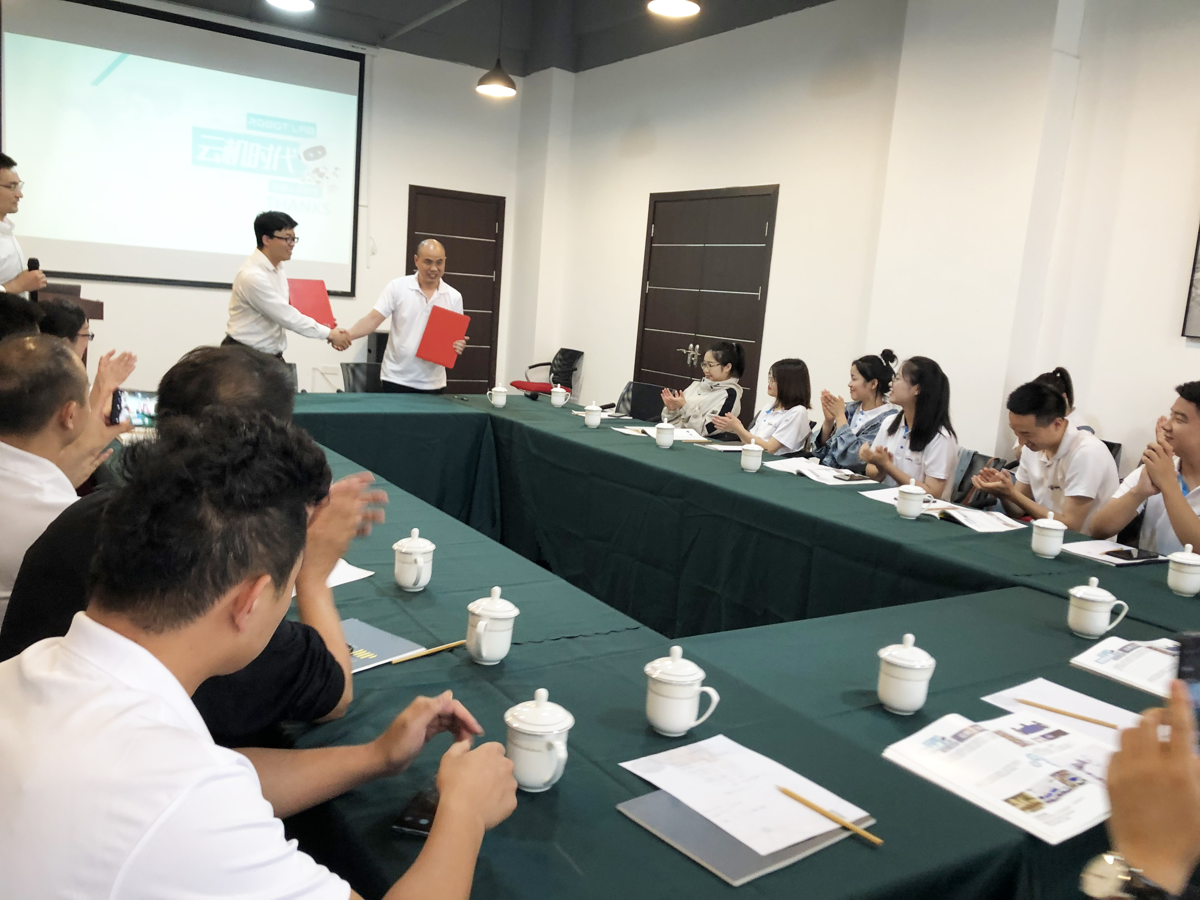 義烏物流展組委會和云機工業(yè)相關負責人開展了座談會。座談會上,云機工業(yè)總經(jīng)理施彬深入淺出地為組委會一行剖析了整個智能物流倉儲的行業(yè)背景,強調(diào)了智能倉儲在電商行業(yè)中的重要性以及傳統(tǒng)倉儲向智能倉儲轉型的歷史必然性,施總表示智能倉儲機器人在行業(yè)中的運用將幫助中小電商企業(yè)解決目前勞動力短缺,節(jié)省人力成本。