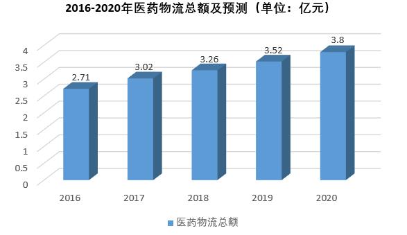 最新的《2017年中國(guó)醫(yī)藥物流發(fā)展報(bào)告》顯示,2017年我國(guó)醫(yī)藥物流總額3.02萬(wàn)億元,同比增長(zhǎng)11.3%。按照每年8%的增長(zhǎng)速度計(jì)算,預(yù)計(jì)到2020年,我國(guó)醫(yī)藥物流總額將達(dá)到3.8萬(wàn)億元。