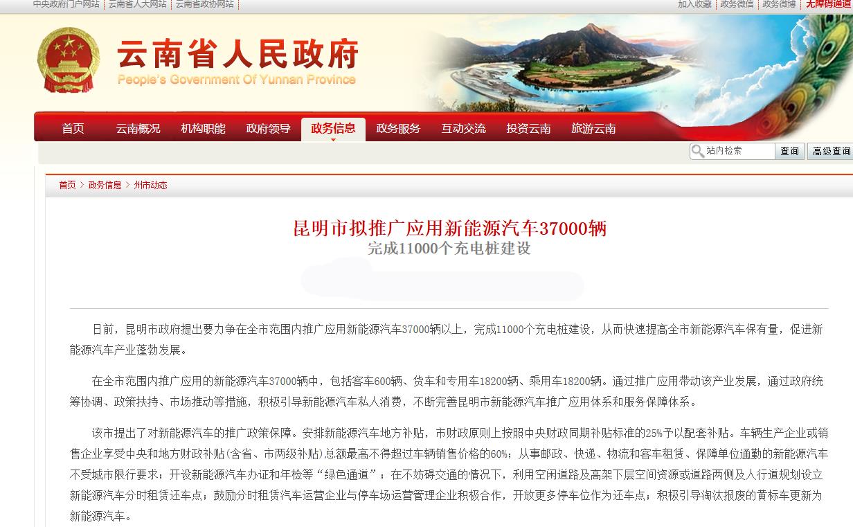 日前,昆明市政府提出要力爭(zhēng)在全市范圍內(nèi)推廣應(yīng)用新能源汽車37000輛,其中包括客車600輛、貨車和專用車18200輛、乘用車18200輛,11000個(gè)充電樁建設(shè),從而快速提高全市新能源汽車保有量,促進(jìn)新能源汽車產(chǎn)業(yè)蓬勃發(fā)展。并推出了一系列對(duì)新能源汽車的推廣的利好政策:
