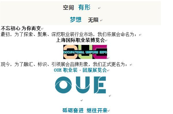 OUE上海國際職業(yè)裝博覽會更名:OUE職業(yè)裝·團(tuán)服展覽會