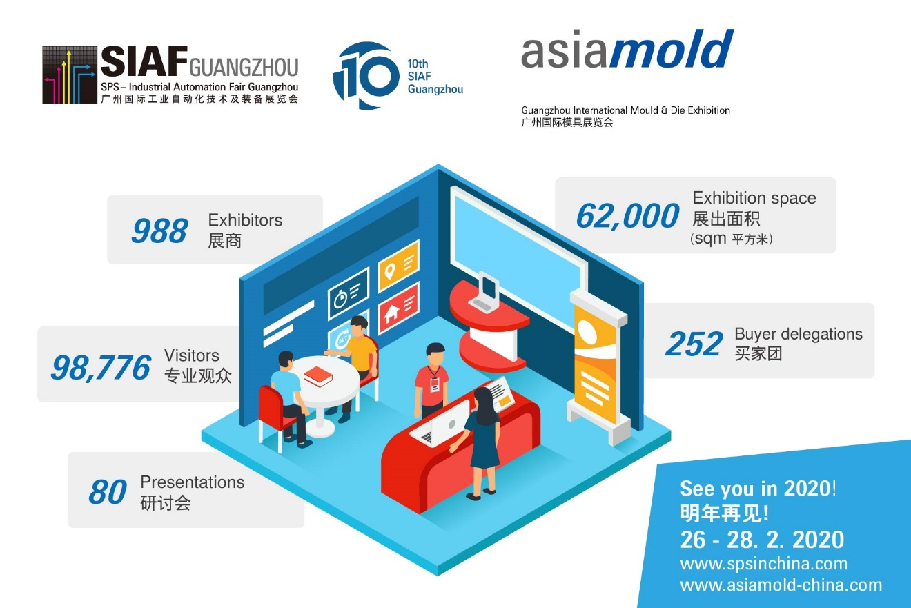 上屆廣州國際模具展覽會收獲巨大成功,觀眾數(shù)量獲得了喜人增長并得到業(yè)內一致肯定。聯(lián)同SIAF廣州國際工業(yè)自動化技術及裝備展覽會,一共迎來98,776名專業(yè)買家入場觀展,比2018年激增37%。兩展共覆蓋5個展館,總展覽面積達62,000 平方米,吸引來自20個國家和地區(qū)共988家參展商。此外,同期亦舉辦近20場由行業(yè)專家主持的演講,與業(yè)內人士分享最新市場見解及創(chuàng)新技術。