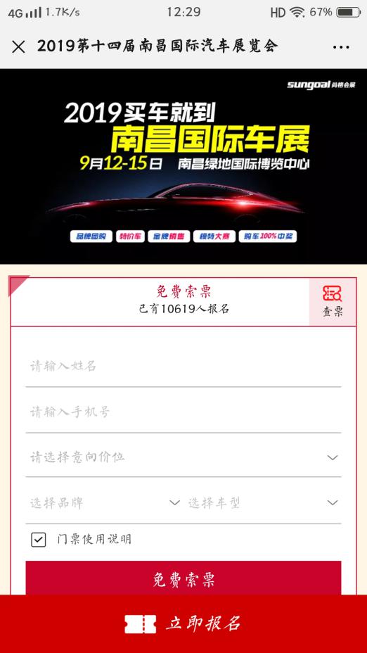 2)免費領(lǐng)取車展門票也可進入搶特價車通道,選擇意向的特價車型并點擊立即報名,即可獲得專屬特價車券,保存券號。