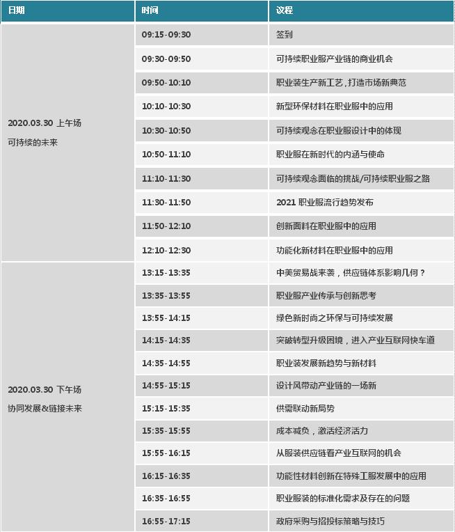 國(guó)內(nèi)職業(yè)裝供應(yīng)鏈?zhǔn)?huì),一天會(huì)議議程,匯聚職業(yè)裝供應(yīng)鏈上下游企業(yè)