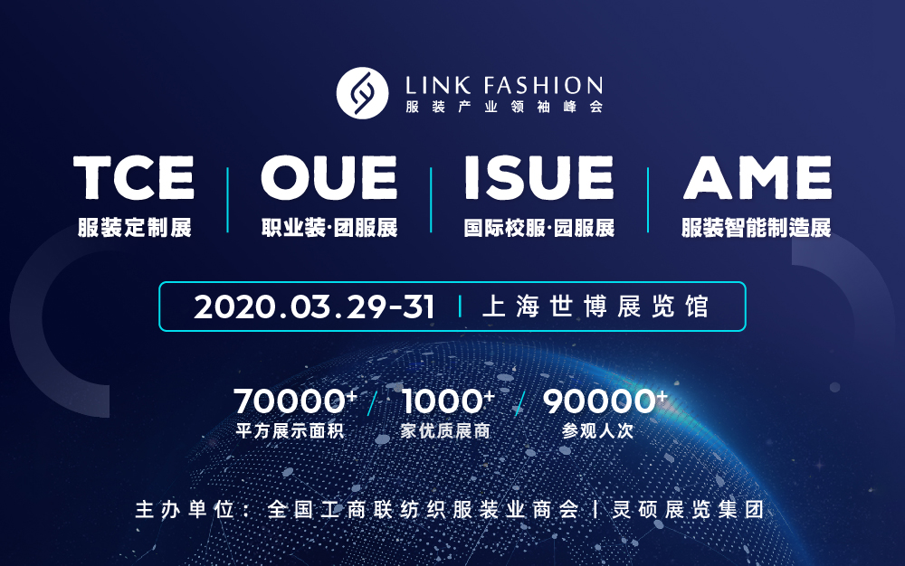 由中華全國工商聯(lián)紡織服裝業(yè)商會(huì)與靈碩展覽集團(tuán)主辦的“2020 全球服裝產(chǎn)業(yè)領(lǐng)袖峰會(huì)”融合旗下四大品牌展會(huì)TCE 服裝定制展,OUE 職業(yè)裝 • 團(tuán)服展,ISUE 國際校服 • 園服展,AME 服裝智能制造展,將于 2020 年 3 月 29-31日在上海世博展覽中心舉行, 超過 70000 ㎡展示面積,1000+優(yōu)質(zhì)參展商,90000+ 參觀人次,超 20 場會(huì)議活動(dòng)。 屆時(shí)將匯聚國內(nèi)外紡織服裝行業(yè)精英領(lǐng)袖,傾力打造全球服裝產(chǎn)業(yè)頂級盛會(huì)。
