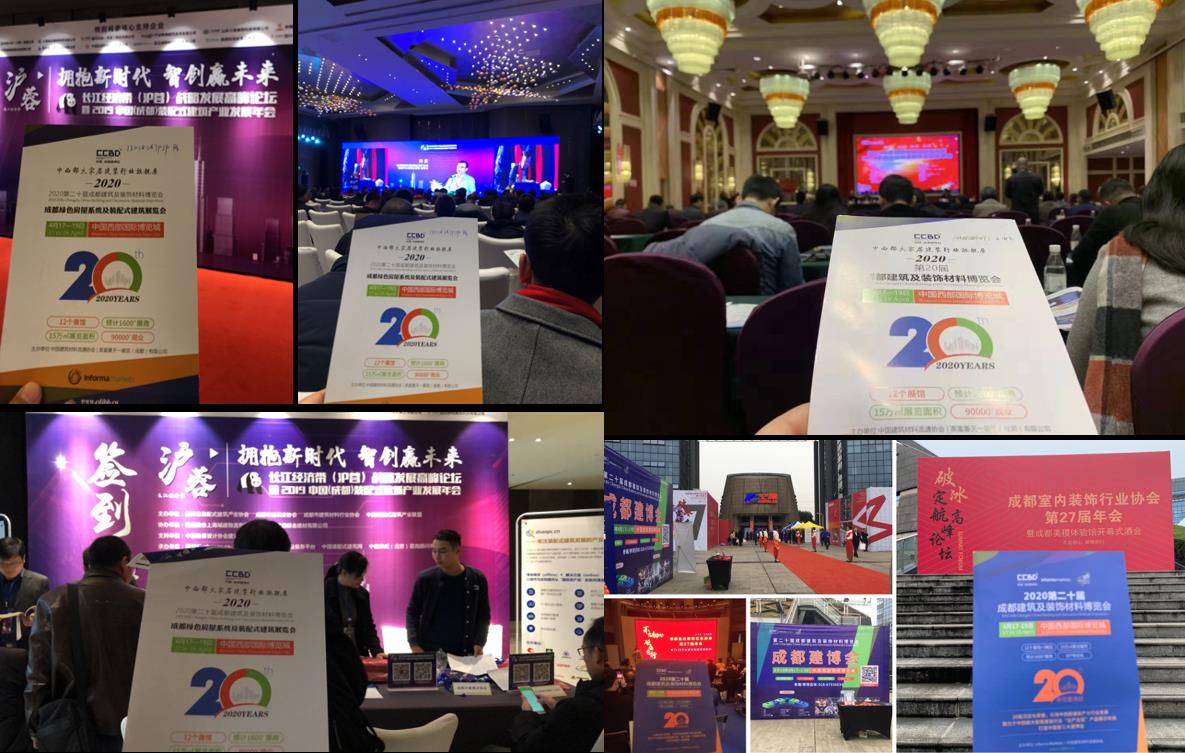 現(xiàn)場宣傳過程中遇到了很多新老朋友,在我們講解了第二十屆成都建博會的全新規(guī)劃和亮點看點后,都紛紛進行了預登記報名參觀,截至目前我們共參加了20多場協(xié)/商會年會,合計近萬名參會人員,報名參觀預登記參觀商近5000多人,包括建材家居行業(yè)廠家、經(jīng)銷商/代理商、房地產(chǎn)公司、裝飾公司、設計師等。在此感謝各協(xié)會對成都建博會的認可和全力支持,新的一年共進共榮,一起回首總結,開啟2020全新征程。1月14日我們還將參加成都住宅與房地產(chǎn)業(yè)協(xié)會主辦的“2019年度成都房地產(chǎn)行業(yè)年會暨高質量發(fā)展論壇”。