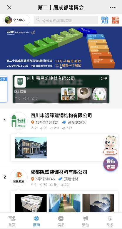 隨著信息技術(shù)的發(fā)展,成都建博會(huì)將線上線下雙線并舉的思路為引領(lǐng),目前全新打造的大家居建裝產(chǎn)品對(duì)接加盟云平臺(tái)——“成都建博會(huì)線上展會(huì)”已上線,平臺(tái)可滿足行業(yè)商家網(wǎng)上推廣、新品發(fā)布、商家宣傳、發(fā)布供需信息、線上展覽、商貿(mào)配對(duì)、客戶(hù)約見(jiàn)等訴求,實(shí)現(xiàn)線上展會(huì)海量曝光蓄客,線下展臺(tái)人氣爆棚,打造中西部家居建材行業(yè)首個(gè)線上+線下高效務(wù)實(shí)的貿(mào)易展會(huì)平臺(tái)。