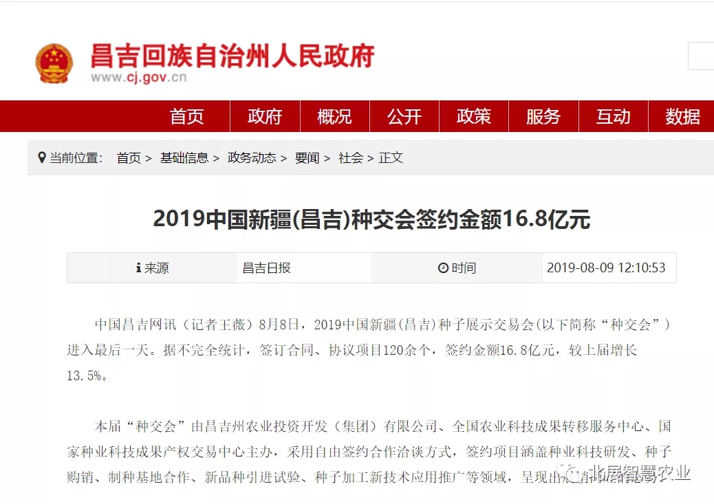 近年來昌吉市每年均安排專項資金,支持制種基地建設,以及市場監(jiān)管,企業(yè)研發(fā)和人才培訓等方面工作。為響應"國家一帶一路"和"十三五"戰(zhàn)略規(guī)劃,并把"互聯(lián)網+"概念落實到新疆農業(yè)科技領域,昌吉種交會自2007年以來,累積展出種業(yè)新技術、新品種、新成果數萬項,轉化推廣科技成果近萬個,對現代農業(yè)發(fā)展起到巨大的推動作用。歷屆交易會共簽約項目千余個,簽約金額數百億元,是全國最專業(yè)的種子交易會。昌吉州人民政府歷來高度重視種業(yè)發(fā)展,歷屆的展會都作為州政府工作報告的重要內容之一,也是自治區(qū)農業(yè)農村廳、兵團農業(yè)局在種業(yè)技術、發(fā)展、交流中的重要平臺。