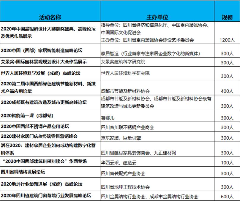 2020成都建博會(huì)現(xiàn)場(chǎng)活動(dòng)包括: