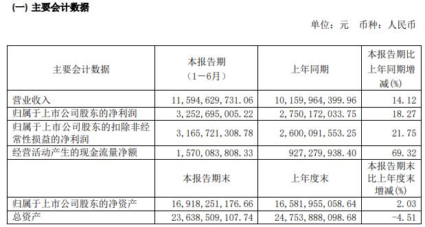 2020上半年,海天味業(yè)多項(xiàng)關(guān)鍵數(shù)據(jù)實(shí)現(xiàn)了良好增長(zhǎng)。其中,實(shí)現(xiàn)營(yíng)收115.95億元,同比增長(zhǎng)14.12%;歸屬于上市公司股東的凈利潤(rùn)32.53億元,同比增長(zhǎng)18.27%;歸屬于上市公司股東的扣除非經(jīng)常性損益的凈利潤(rùn)31.66億元,同比增長(zhǎng)21.75%;經(jīng)營(yíng)活動(dòng)產(chǎn)生的現(xiàn)金流量?jī)纛~15.70億元,同比增長(zhǎng)69.32%。