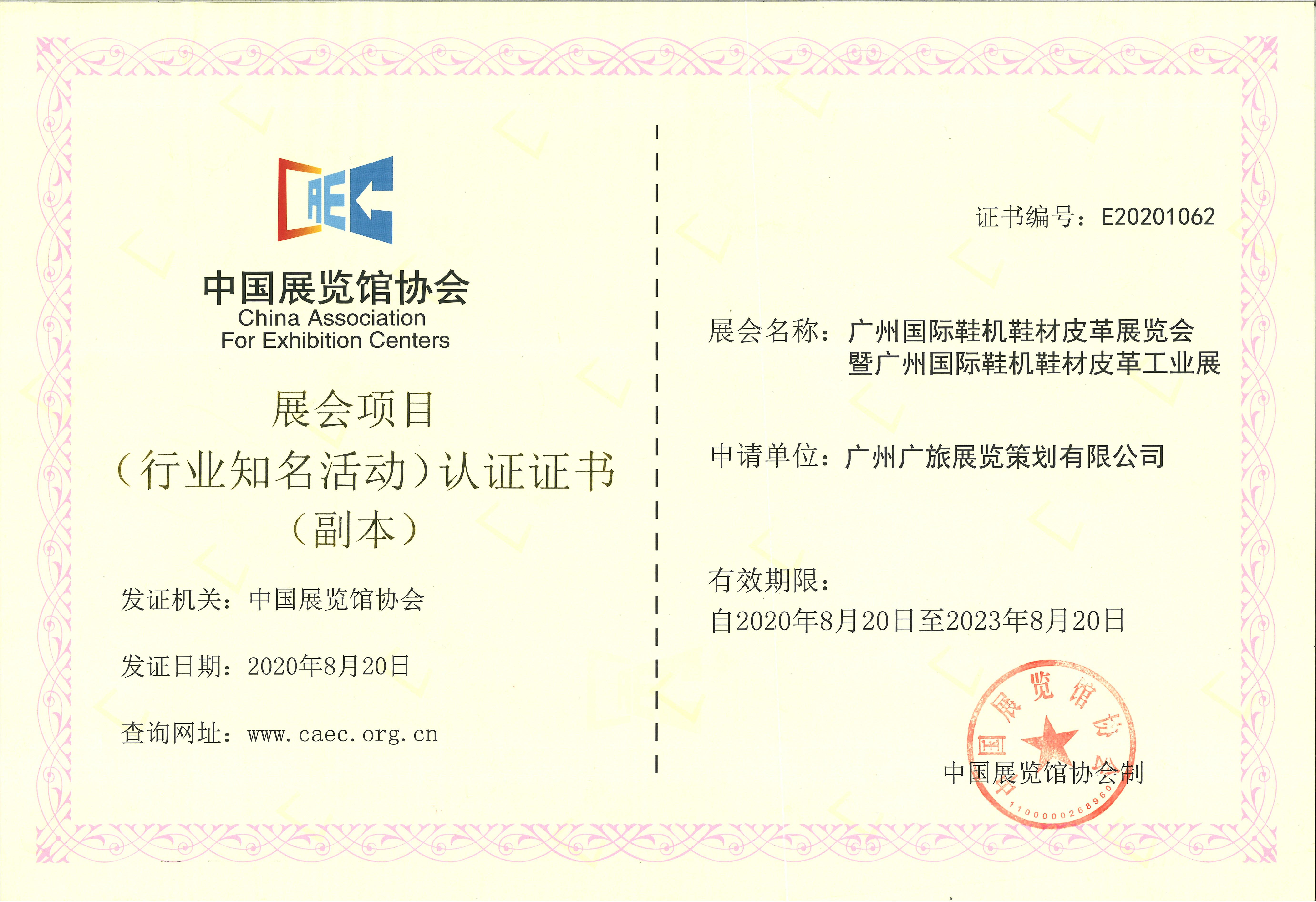獲中國展覽館協會認證2021廣州國際鞋機鞋材皮革工業(yè)展再添新榮譽
