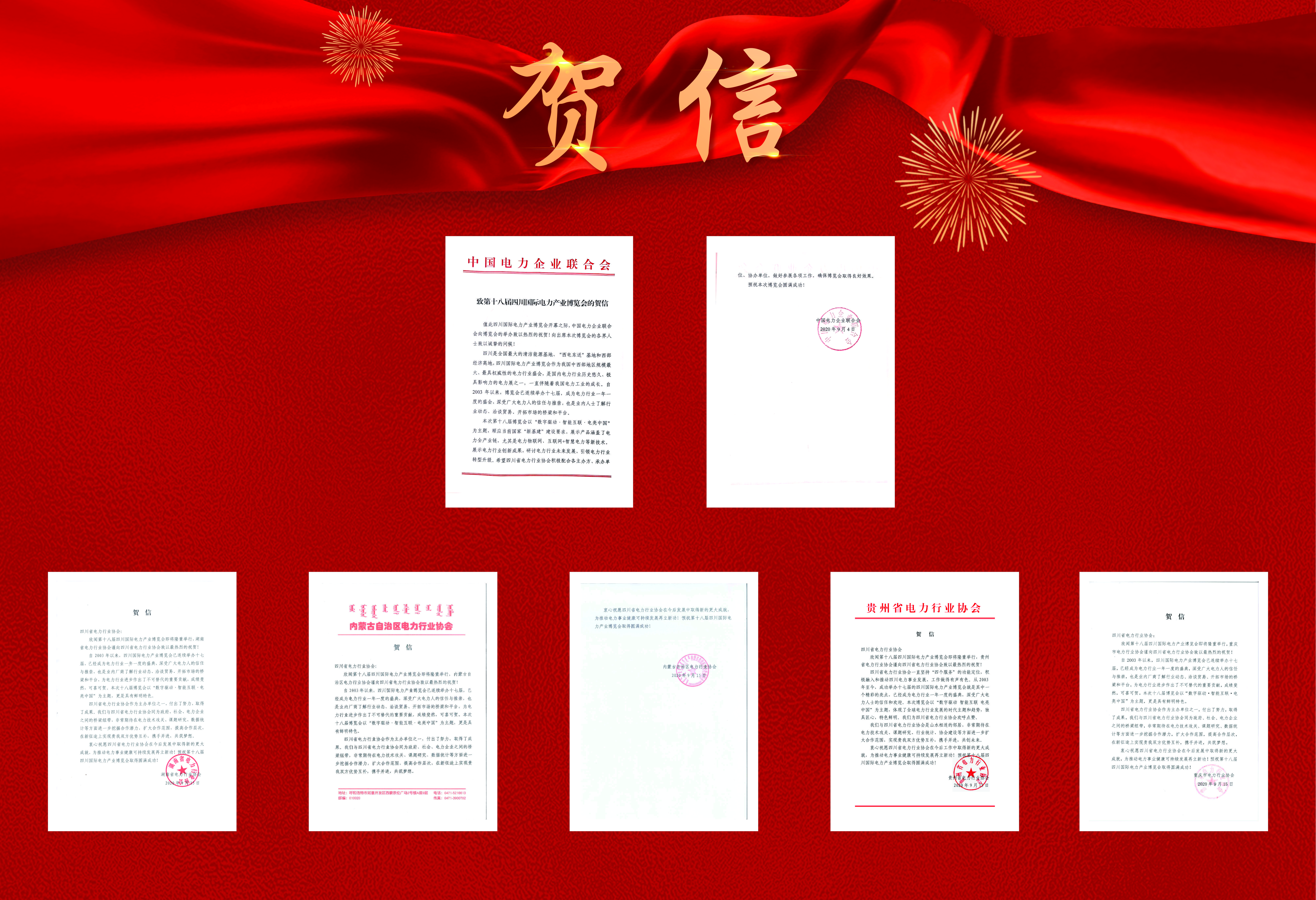 中電聯(lián)及湖南、內(nèi)蒙古、貴州、重慶電力行協(xié)致信祝賀SIEP2020四川電力展開幕