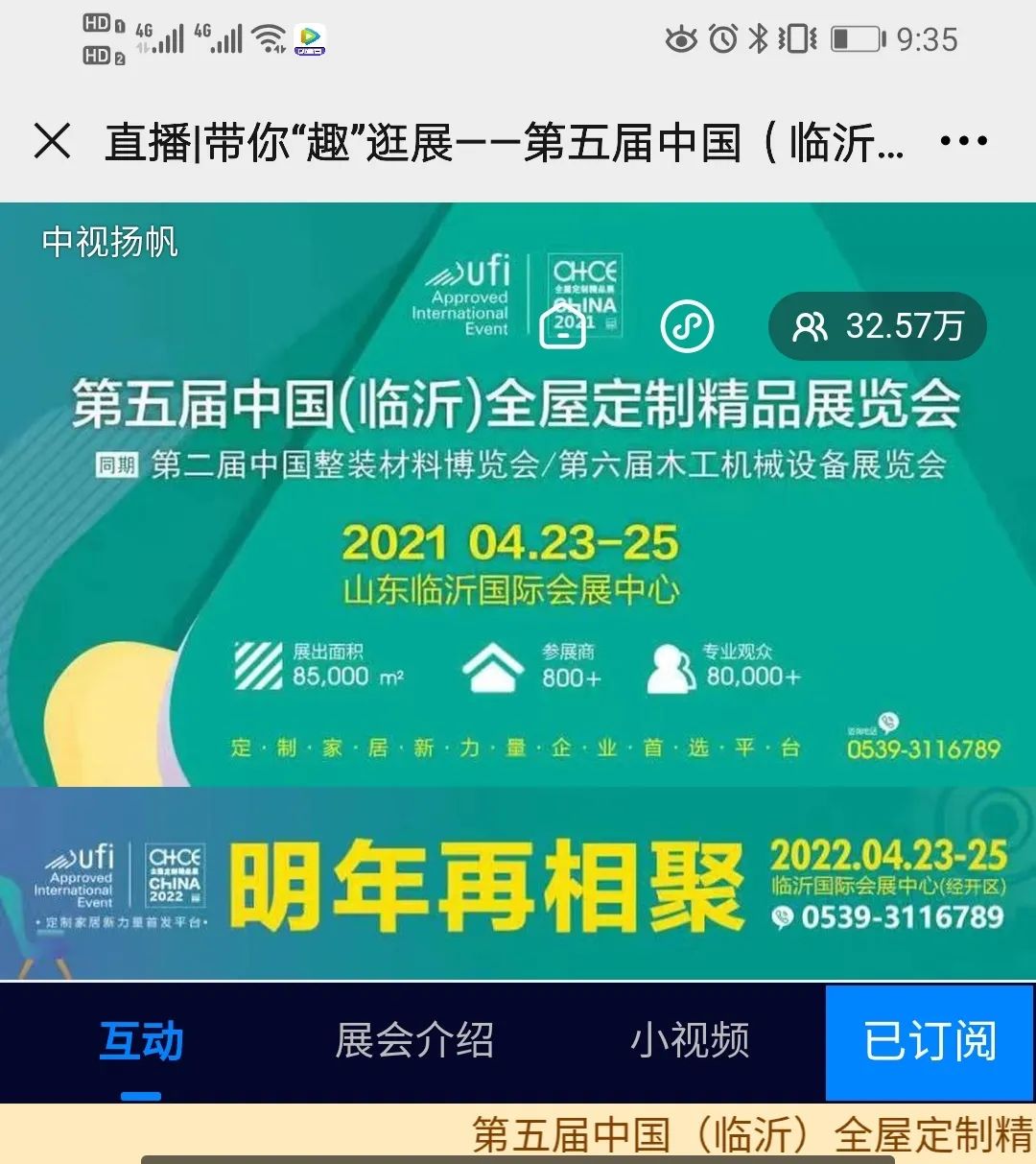 線上線下同步展示,展會期間還通過全網(wǎng)多媒體直播的形式全程同步直播展會盛況,斬獲全網(wǎng)播放量32.57萬,還有我們的視頻號“趣逛展”和臨沂交通旅游廣播,讓不能到現(xiàn)場的采購商通過手機屏幕了解展會及企業(yè)產(chǎn)品,與展會現(xiàn)場實現(xiàn)互動溝通。觀眾們通過展會線上云展廳高效觀展,進一步拓展了博覽會交流渠道與市場空間,促進了平臺經(jīng)濟、共享經(jīng)濟健康發(fā)展,打造了專業(yè)定制家居行業(yè)交流平臺。