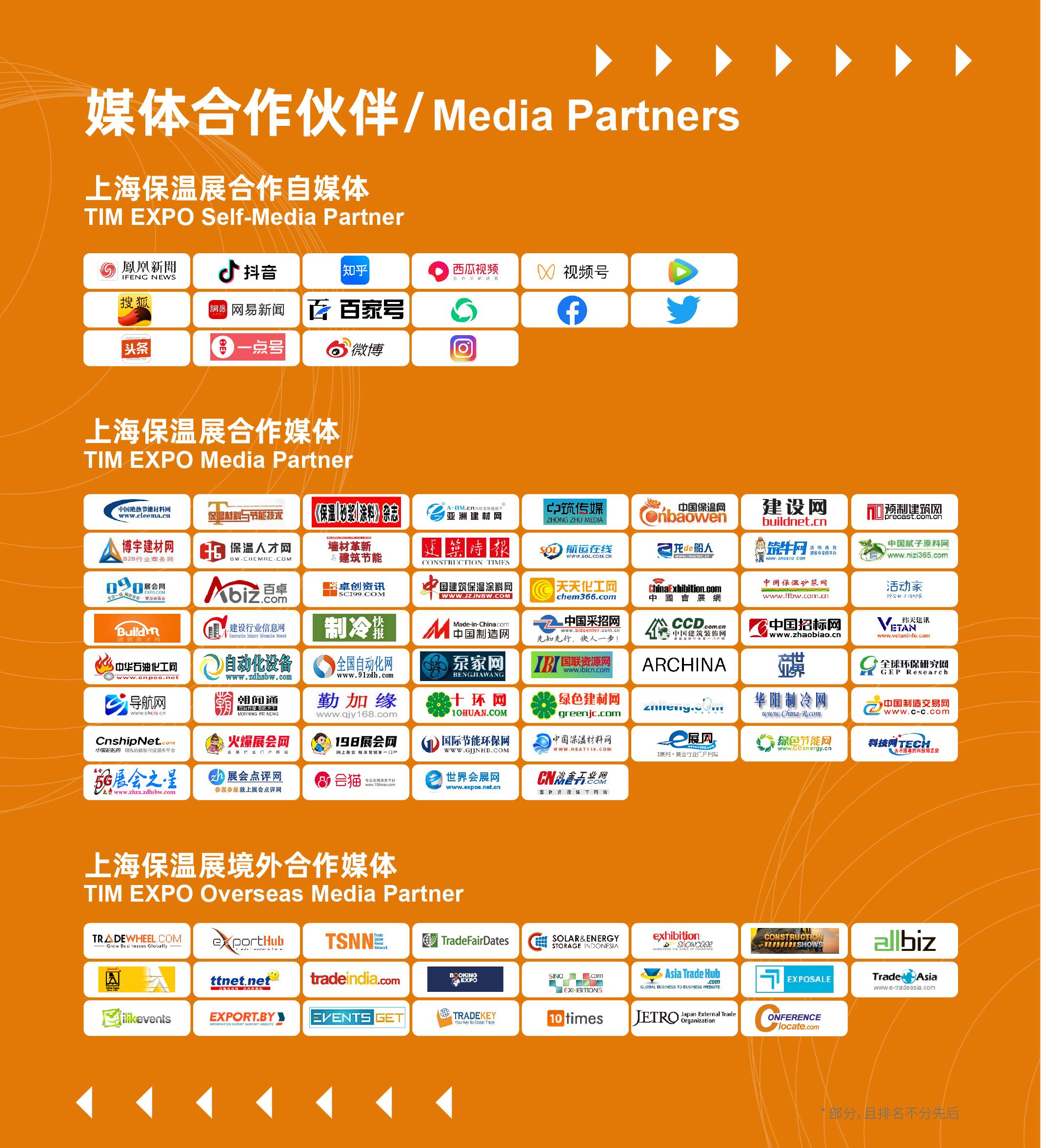 上海保溫展與中國保溫網(wǎng)、中國建筑保溫涂料網(wǎng)、《建筑節(jié)能保溫》雜志、博宇傳媒《保溫商情》、建設(shè)行業(yè)信息網(wǎng)、中國建設(shè)材料設(shè)備網(wǎng)、中國制造網(wǎng)、綠色建材網(wǎng)、制冷大市場、綠建之窗、《保溫精選》、活動家、中國采招網(wǎng)、建筑英才網(wǎng)、TradeAsia Service、Asiatradehub、TradeWheel等數(shù)百家行業(yè)相關(guān)媒體進(jìn)行了深度合作、周期性報道展會信息。