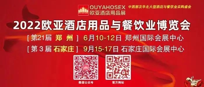 第21屆(鄭州)歐亞酒店用品與餐飲業(yè)博覽會(huì)將于2022年6月10-12日在鄭州國際會(huì)展中心舉辦;第3屆(石家莊)歐亞酒店用品與餐飲業(yè)博覽會(huì)將于2022年9月15-17日在石家莊國際會(huì)展中心舉辦。